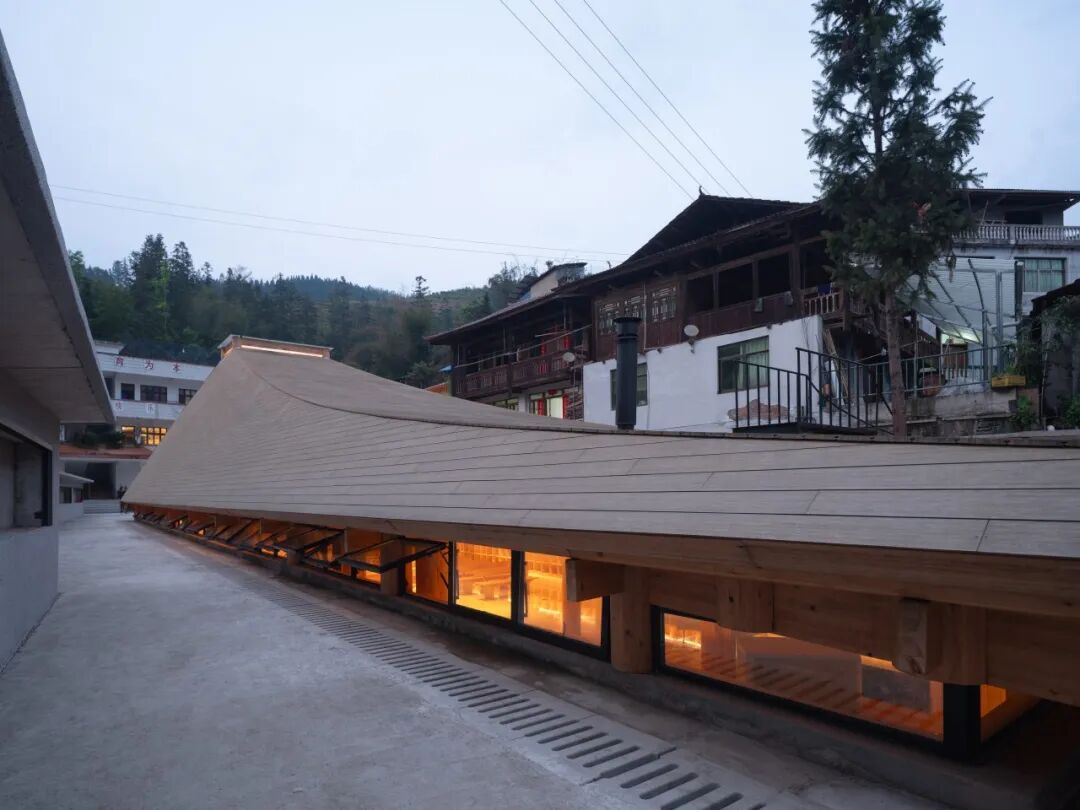 其实我们的设计都是来自地方,尤其是这栋建筑当地叫鼓楼,我们从鼓楼的结构体系中延伸出来,也通过用当地的杉木材料,如何跟现代的技术融合,比如说鼓楼的结构形式的延伸,如何以当代的生命力,如何跟这个时代对话,或者是我们想象未来这样的木结构建筑,它如何走到下一个时代去,我们非常渴望做这样的讨论。